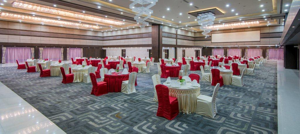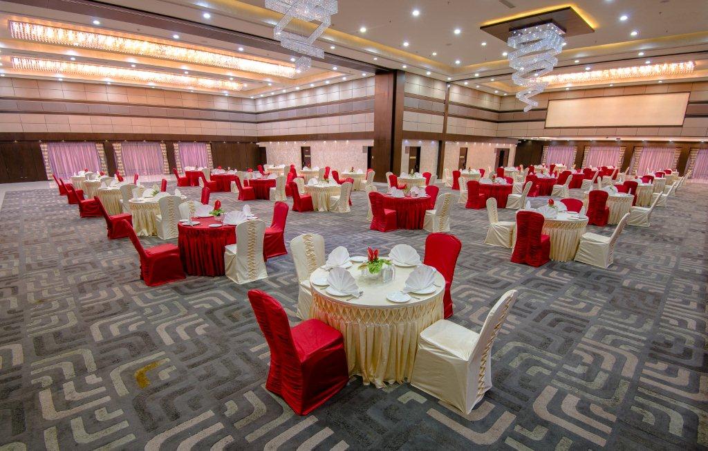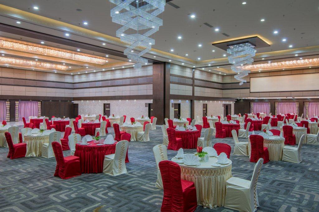 When seeking the best banquet in Ahmedabad, one is spoilt for choice, as the city abounds in an array of splendid establishments with distinctive attributes and amenities. We present a magnificent grand ballroom spanning an expanse of 16,000 square feet, providing a flexible space that can be effortlessly transformed into three enchanting, pillar-less banquet halls standing tall at a height of 22 feet. The grand ballroom can easily accommodate 1300 guests, and it is equipped with state-of-the-art facilities, ensuring everything is second to none.